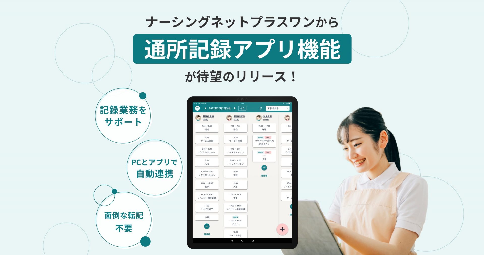 このたび、ナーシングネットプラスワンから通所記録アプリ機能が登場しました。