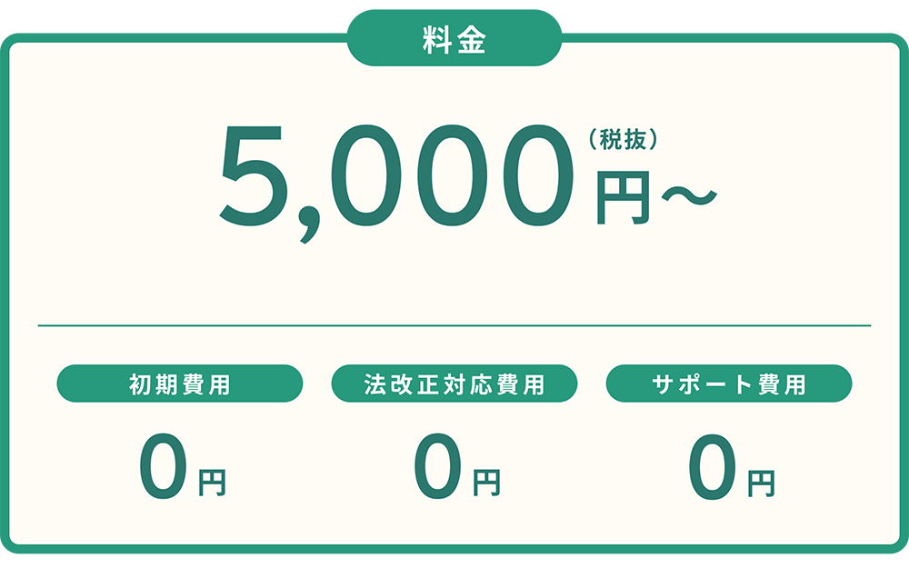 介護ソフトの相場は2~5万円と言われています。さらに毎月のソフト料金とは別で初期費用やサポート費用が発生してしまうことも。ナーシングネットプラスワンは毎月のソフト料金以外はいただかないシンプルな料金体系となっております。初期費用はもちろん、法改正対応費用やサポート料もいただきません。他社ソフトと比較してコスト削減できる場合もございます。