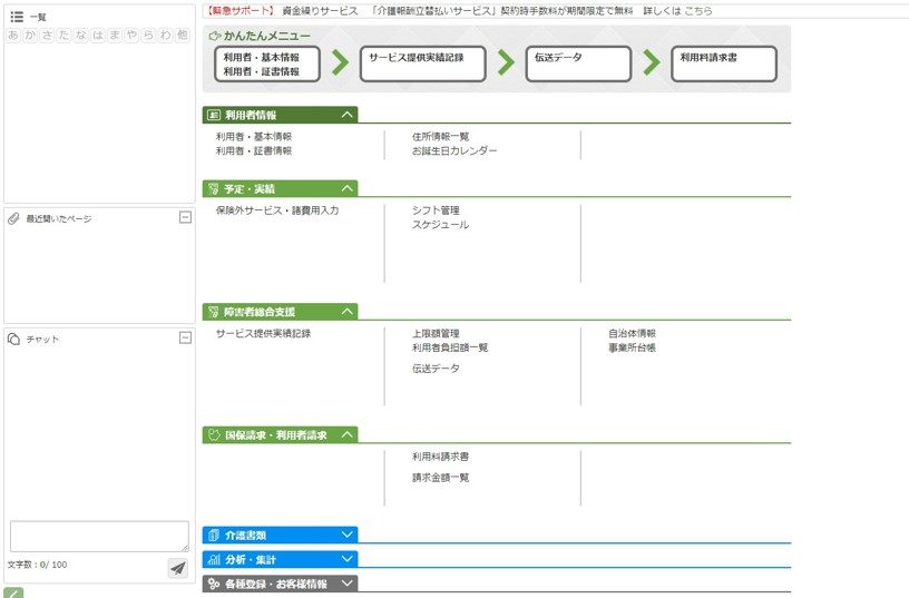 利用者様の日々の記録(介護サービスご利用時)も操作性など、是非ご確認ください。 訪問介護と障がい者総合支援サービスの「請求金額一覧」をまとめて確認することもできます。