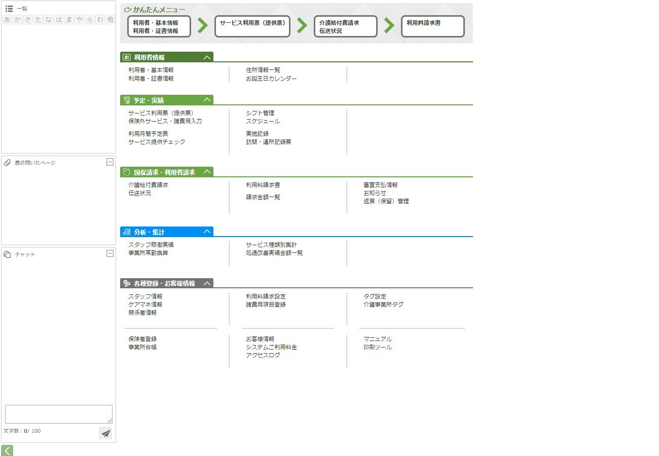 ご利用者様情報の登録から、サービス利用票(提供票)の作成、給付管理・介護給付費請求書の作成などが行えます。